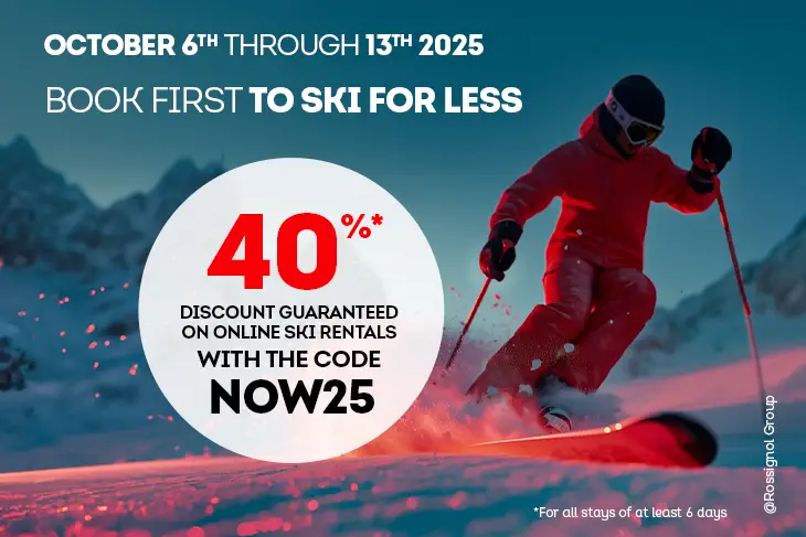 Offer only available online at https://ski-hire-sport2000.co.uk with the promotional code "NOW25" to be added before checking out. Get a 40% discount guaranteed for ski, snowboard, and other sliding equipment rentals.